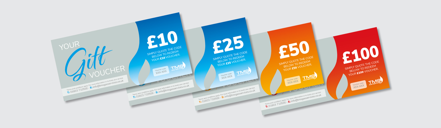 Our TMS Gift Vouchers are a great gift for friends or relatives. Available in £10, £25, £50 and £100 amounts, your voucher can be redeemed against any TMS Gas Service.